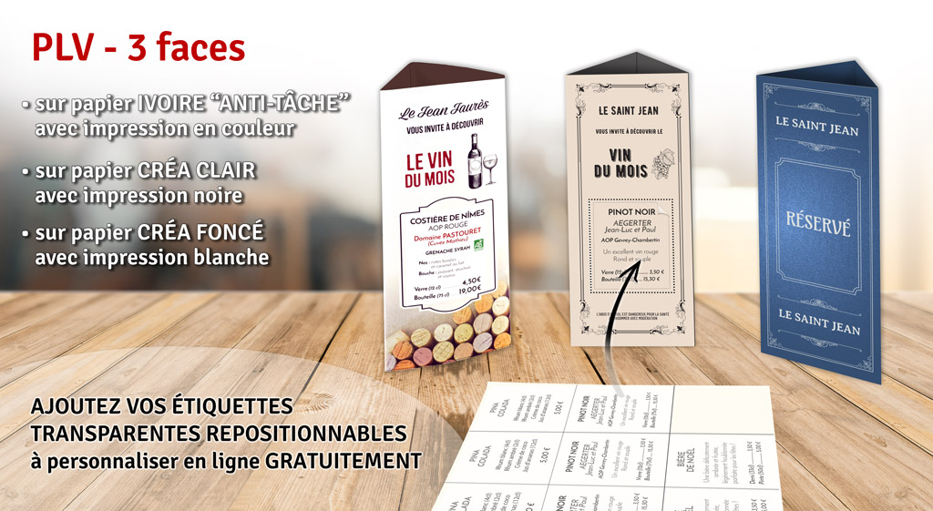 • PLV de table - Triptyque : 3 faces 9 x 21 cm